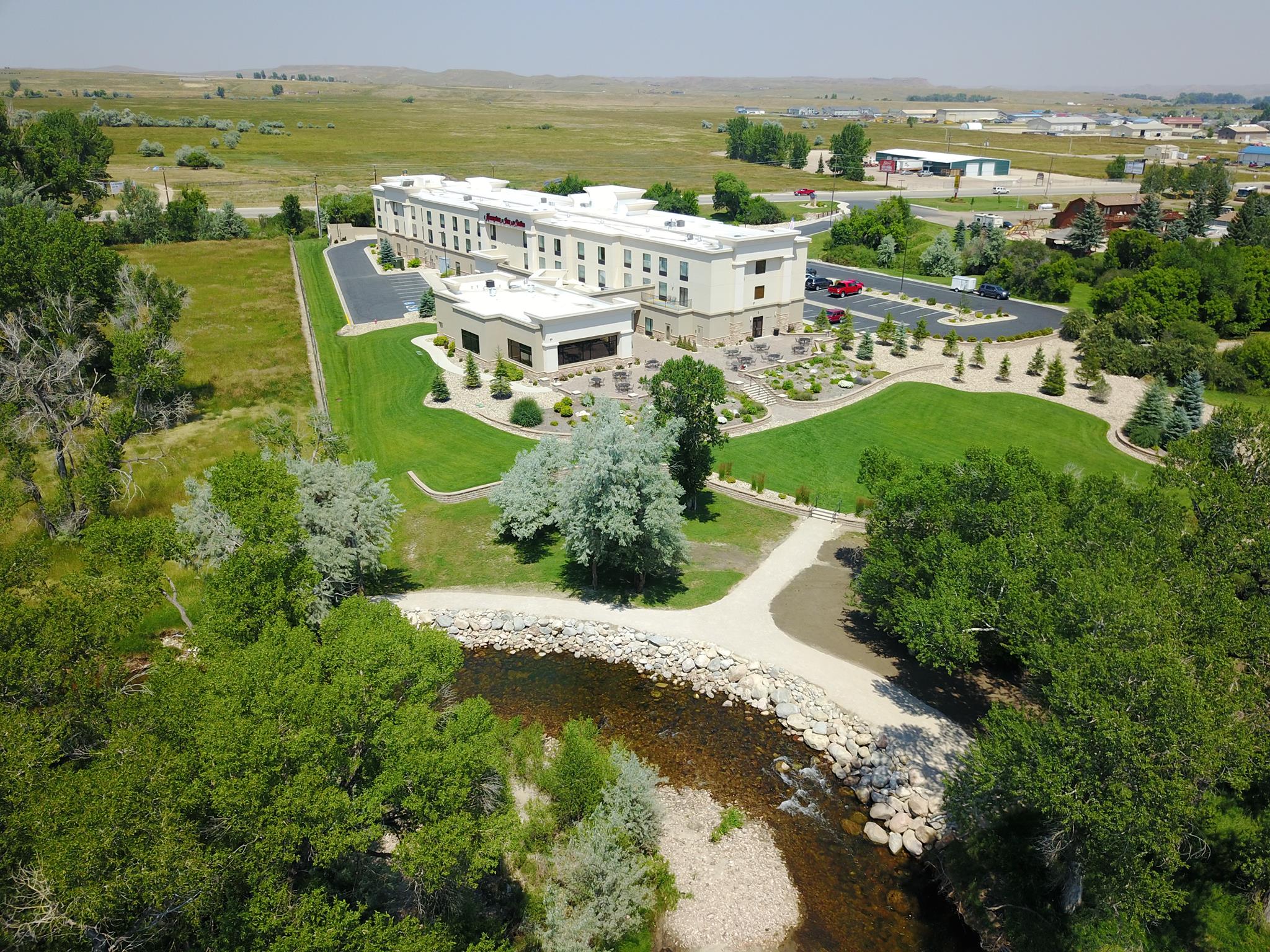 When looking for hotels to host your Buffalo event, the Hampton Inn & Suites offers flexible meeting and event space. This hotel in Buffalo, WY is conveniently located at the crossroads of I-90, I-25 and Highway 16, and offers three event rooms with space for groups as large as 112 people. Our Buffalo hotel features smaller meeting rooms for more intimate gatherings, along with ample free parking, free WiFi and a full hot breakfast. Host your Buffalo, Wyoming, wedding reception, galas, parties, business conference or grand family celebration with the help of the friendly, attentive staff at Hampton Inn & Suites Buffalo hotel.